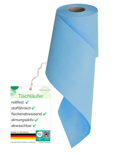 Sensalux Tischläufer, Länge: 25m, stoffähnliches Vlies, Breite: 15cm, Hellblau
