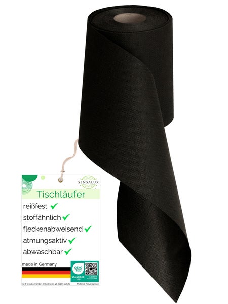Sensalux Tischläufer, Länge: 25m, stoffähnliches Vlies, Breite: 15cm, Schwarz