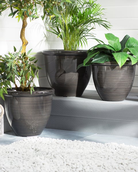 Runde Blumenkübel in dunklem Braunton. Setzen Sie auf Gartenaccessoires, die nicht nur im Außenbereich eine gute Figur machen! Mit diesen Pflanzentöpen treffen Sie immer die richtige Wahl – ihre elegante, dunkle Farbe und die rundliche Form machen sie zur universellen Ausstattung, ob für Haus oder Garten. Zudem wurden die Kübel aus wetterfesten Materialien gefertigt und eignen sich daher für jede Saison. Details: Typ Outdoor Blumentopf. Farbe: Braun. Farbton: Dunkelbraun. Material: Stein. Material: Lehm-Faser-Mischung. Form: Rund. Abflusslöcher am Boden: Vorgestanzt. Innentopf benötigt: Nein. Volumen: 25. Abmessungen: Tiefe: 40 cm. Breite: 40 cm. Höhe: 34 cm. Gewicht: 3 kg. .Sie kaufen: 2 x Blumenkübel. Produktvorteile: Mit optionalen Abflusslöchern (inkl. Stöpsel), Dekorativ und zugleich funktional, Besonders pflegeleicht und langlebig, Geeignet für den Innen- und Aussenbereich, UV-Beständigkeit. Montage: Benötigt keine Montage. Beständigkeit: Feuchtigkeitsbeständig, Temperaturbeständig, UV-beständig. Beständigkeit Text: UV-strahlenbeständige Möbel weisen eine erhöhte Beständigkeit gegen Verblassen oder Verfärbung auf. Wir empfehlen jedoch, dass Sie das Produkt bei Nichtgebrauch abgedeckt aufbewahren. Dies gewährleistet die maximale Lebensdauer der Möbel. Feuchtigkeitsbeständigkeit bedeutet, dass der Artikel leichtem Regenschauer und hoher Luftfeuchtigkeit im Außenbereich standhält. Sollte es nicht möglich sein, ihn drinnen zu lagern, sollte er mit einem Regenschutz abgedeckt werden. Wenn Möbel oder Accessoires längere Zeit Feuchtigkeit ausgesetzt werden, kann dies zu anhaltenden Schäden führen. Das Produkt ist temperaturbeständig, so dass es an heißen Tagen und außerhalb der Saison im Freien verwendet werden kann. Der Artikel hält Temperaturen von -20° bis 40° Celsius stand. Pflegeanleitung: Lehm-Faser-Mischung: 1.Das Material ist für die Nutzung im Innen- und Außenbereich konzipiert und bedarf keiner besonderen Pflege oder Reinigung. Jedoch empfehlen wir für die Wintersaison, die Produkte trocken und kühl drinnen zu lagern.