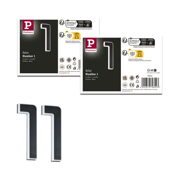 Set Solar LED Hausnummernleuchte inkl. wechselbarer Akku Nummer 11 3000K 2x6lm 2x0,2W Schwarz