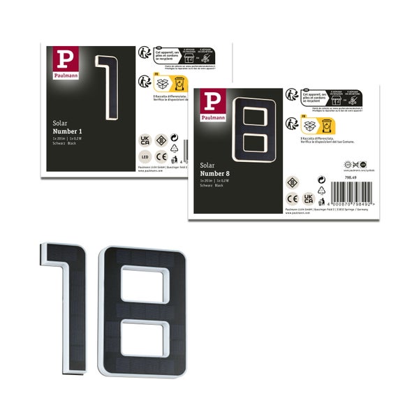 Set Solar LED Hausnummernleuchte inkl. wechselbarer Akku Nummer 18 3000K 2x6lm 2x0,2W Schwarz