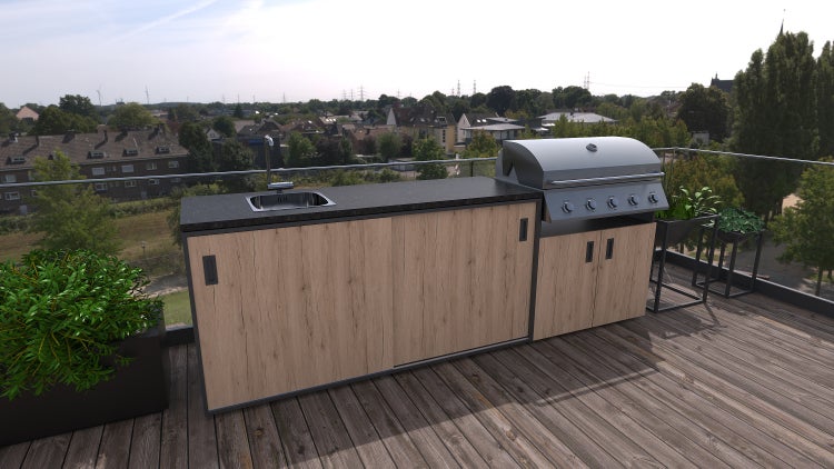 Set Venice - Eiche - Granit - Pulverbeschichtete Edelstahl-Outdoorküche mit Spüle, eingebautem Gasgrill und Arbeitsplatte aus Granit