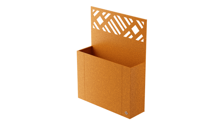 Unser Hochbeet mit Sichtschutz„Manarola“ aus wetterfestem Cortenstahl bietet reichlich Raum für eine Vielzahl von Zier- und Gemüsepflanzen. Es misst 40 x 136 x 100 cm. Die integrierte Sichtschutzwand kann auch als Fläche für Kletterpflanzen genutzt werden. Die Höhe des Sichtschutzes beträgt 180 cm.