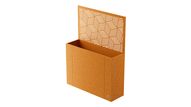 Unser Hochbeet mit Sichtschutz„Manarola“ aus wetterfestem Cortenstahl bietet reichlich Raum für eine Vielzahl von Zier- und Gemüsepflanzen. Es misst 40 x 136 x 100 cm. Die integrierte Sichtschutzwand kann auch als Fläche für Kletterpflanzen genutzt werden. Die Höhe des Sichtschutzes beträgt 180 cm.