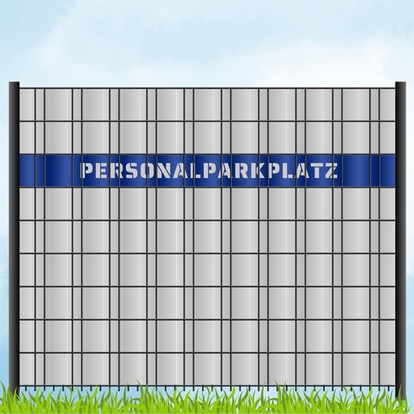 Sichtschutzstreifen zaun|zu® Laser Beschriftung PERSONALPARKPLATZ Enzianblau 2,55m