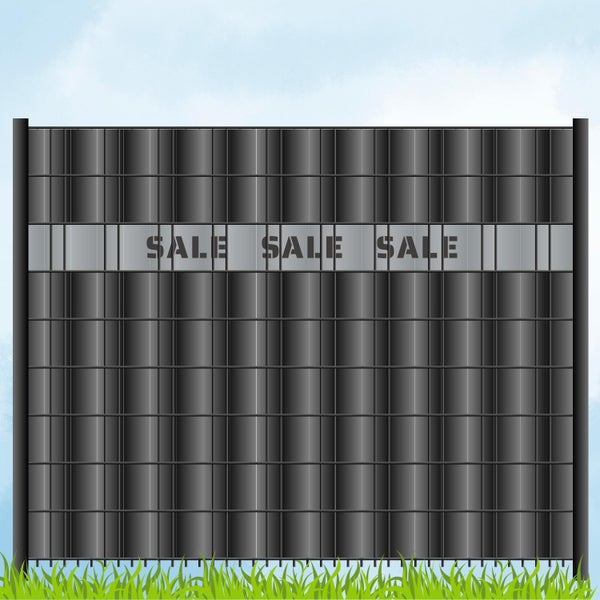 Der Schriftzug SALE SALE SALE wird direkt aus dem Material herausgelasert – eine langlebige, wetterbeständige und elegante Alternative zu klassisch bedruckten Sichtschutzstreifen. Mit einer großen Auswahl an Farbvarianten kannst du deinen Zaun individuell gestalten und perfekt auf dein Corporate Design abstimmen.