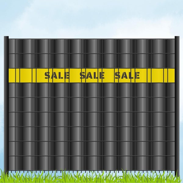 Der Schriftzug SALE SALE SALE wird direkt aus dem Material herausgelasert – eine langlebige, wetterbeständige und elegante Alternative zu klassisch bedruckten Sichtschutzstreifen. Mit einer großen Auswahl an Farbvarianten kannst du deinen Zaun individuell gestalten und perfekt auf dein Corporate Design abstimmen.