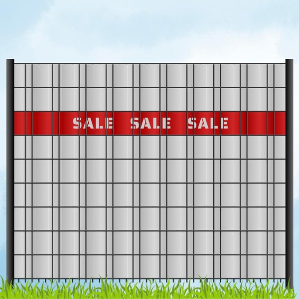 Der Schriftzug SALE SALE SALE wird direkt aus dem Material herausgelasert – eine langlebige, wetterbeständige und elegante Alternative zu klassisch bedruckten Sichtschutzstreifen. Mit einer großen Auswahl an Farbvarianten kannst du deinen Zaun individuell gestalten und perfekt auf dein Corporate Design abstimmen.