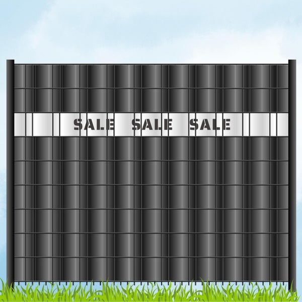Der Schriftzug SALE SALE SALE wird direkt aus dem Material herausgelasert – eine langlebige, wetterbeständige und elegante Alternative zu klassisch bedruckten Sichtschutzstreifen. Mit einer großen Auswahl an Farbvarianten kannst du deinen Zaun individuell gestalten und perfekt auf dein Corporate Design abstimmen.