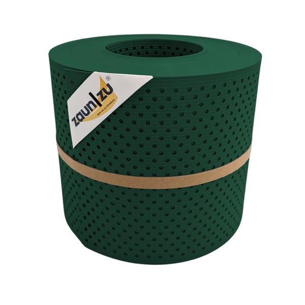 Sichtschutzstreifen zaun|zu® Rille Gelocht 15 Prozent PP Streifen Grün 26m