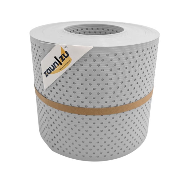 Sichtschutzstreifen zaun|zu® Rille Gelocht 15 Prozent PP Streifen Lichtgrau 26m