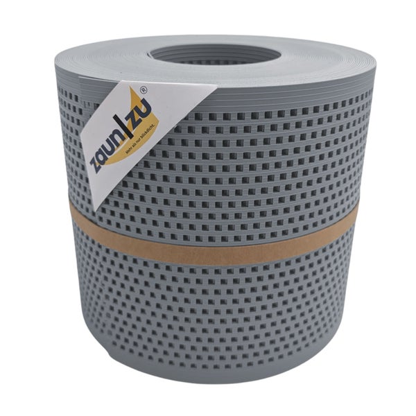 Sichtschutzstreifen zaun|zu® Rille Gelocht Quadrat-Muster für Doppelstabmatten Fenstergrau 26m