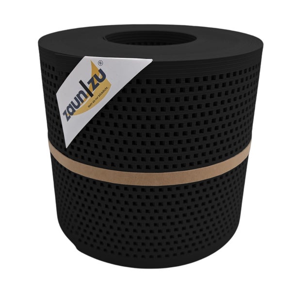 Sichtschutzstreifen zaun|zu® Rille Gelocht Quadrat-Muster für Doppelstabmatten Schwarz 26m