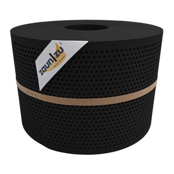 Sichtschutzstreifen zaun|zu® Rille Gelocht Quadrat-Muster für Doppelstabmatten Schwarz 50m