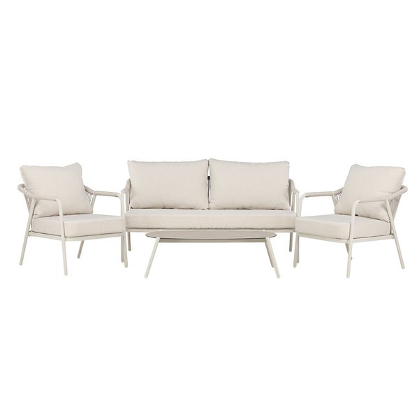 Sicily Loungeset 1 Sofa, 2 Stühle, 1 Couchtisch beige. 55 X 108 X 33 cm