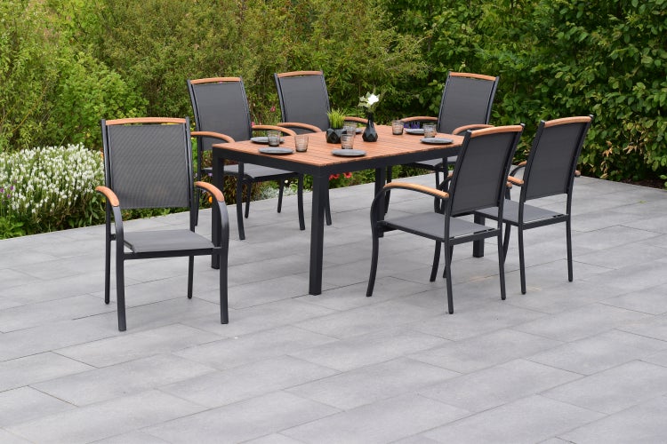 Siena Gartenmöbelset 7tlg., Stapelsessel, Tisch 150 x 90 cm, graphit/grau