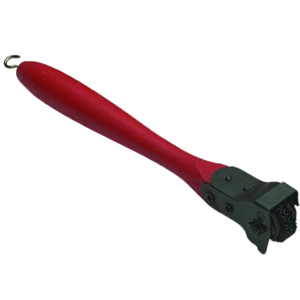 Ein stabiles Griffstück aus Edelholz ermöglicht festes, bequemes und beidhändiges Zupacken. Stütznasen erleichtern das gleichmäßige Anlegen der Rolle an die Schleifscheibe. Sie vereinfachen auch die seitlichen Bewegungen, um die gesamte Breite der Schleifscheibe abzurichten. Ein Schutzblech verhindert das Sprühen von Funken gegen Gesicht und Hände.