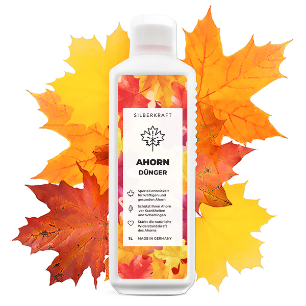 Für ein Farbenspiel, das begeistert! Mit dem Silberkraft Ahorndünger. Dein Japanischer Ahorn oder Fächerahorn ist der Star in deinem Garten? Mit seinen filigranen Blättern und der spektakulären Herbstfärbung zieht er alle Blicke auf sich. Damit seine Farben intensiv leuchten und er gesund und vital bleibt, braucht er eine angepasste Ernährung. Unser flüssiger NPK-Dünger ist die perfekte Wahl für alle Ahornarten. Warum dein Ahorn diesen Dünger lieben wird: