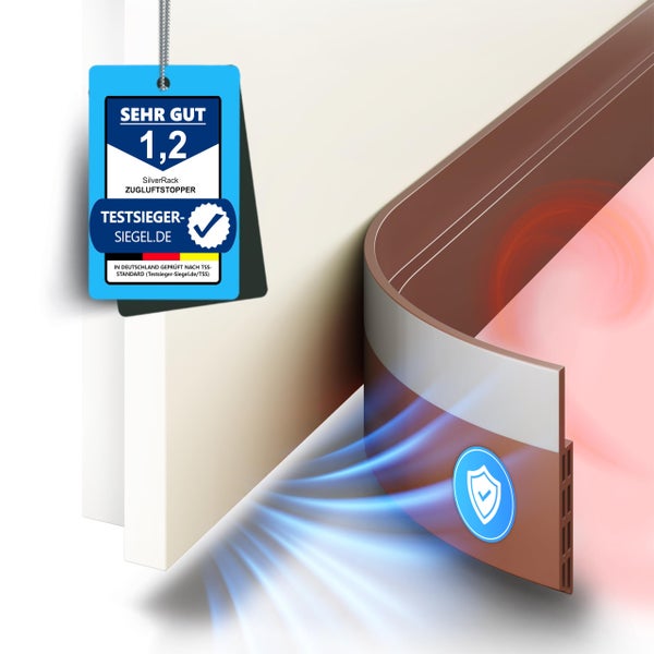 SilverRack Zugluftstopper für Türen Braun [1 x 1m] - Zuschneidbare Türdichtung selbstklebend - Türdichtung unten - Gummilippe Tür Dichtung Zugluft - Tür Windschutz, Schallschutz & Kälteschutz