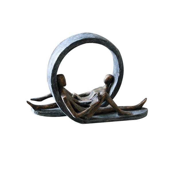 Glück ist, Zeit mit einem Menschen zu verbringen, der aus einem ganz normalen Tag etwas ganz Besonderes macht. - Mit diesem aussagekräftigen Spruchanhänger ist die Skulptur Auszeit versehen. Die bronzefarbenen Figuren in grauer Basis werden durch ihre Oberflächenstruktur zu einem besonderen Blickfang. Eine Skulptur mit Symbolcharakter und ‚Tiefgang‘.
