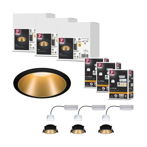 Smart Home Zigbee Set Smart Home Zigbee 3.0 Einbauleuchte Cole + Zigbee Coin IP44 rund 88 mm 3x6W 3x470lm 230V dimmbar 2700K Schwarz/Gold matt