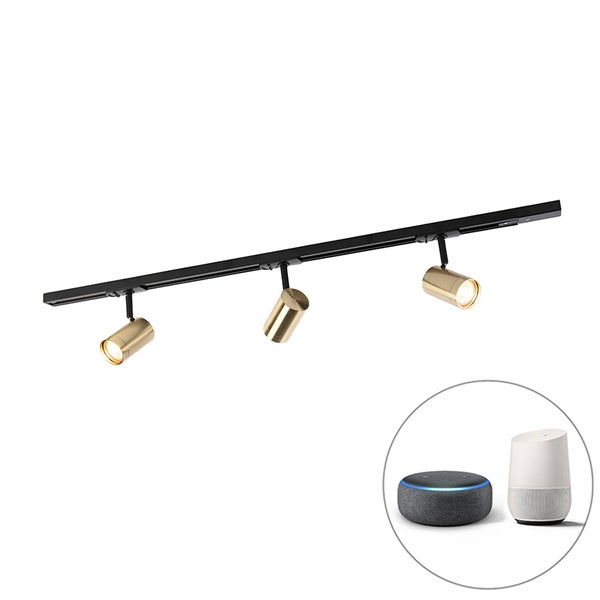 Smartes Schienensystem Schwarz mit Gold 1-phasig 3 Lichter inkl. Wifi GU10- Jeana
