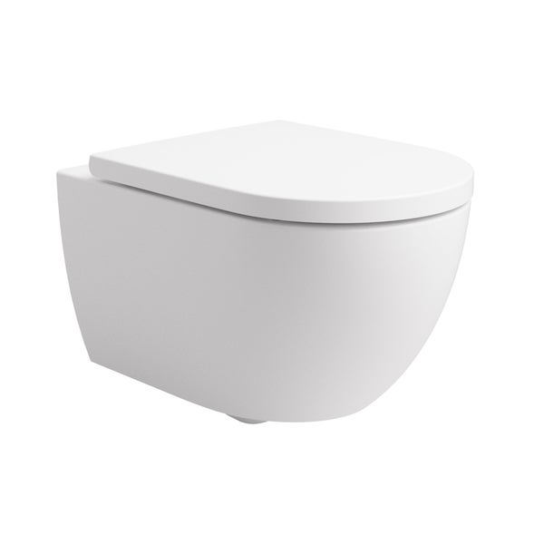 Soho Whirlflush Hänge Wand WC Spülrandlos Toilette Weiß Matt mit WC-Sitz