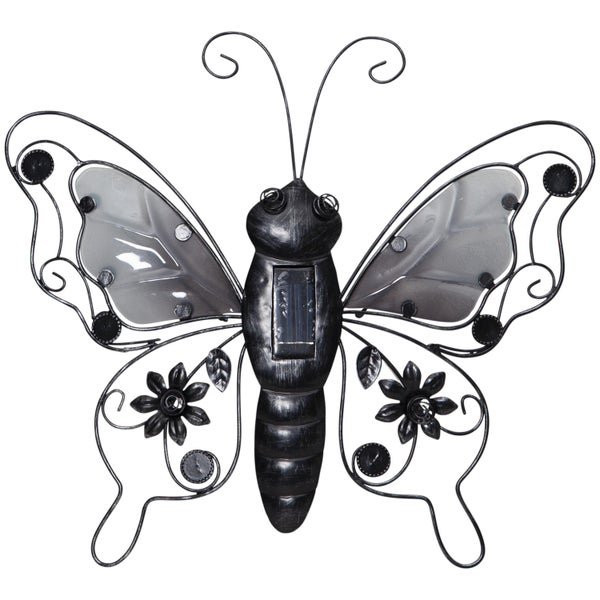 - Die Solardekoration stellt einen schwarzen Schmetterling mit schönen Details und kleinen Lichtern in den Flügeln dar