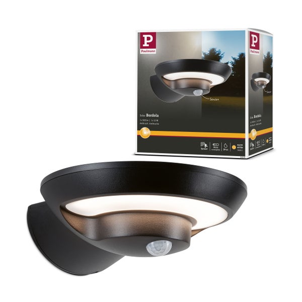 Solar LED Außenwandleuchte Bordola Dämmerungsgesteuerter Bewegungsmelder (IR) IP44 180x211mm 3000K 3,5W 220lm 3,7V Anthrazit Kunststoff