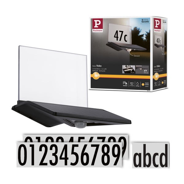Solar LED Hausnummernleuchte Yoko Dämmerungsgesteuerter Bewegungsmelder (IR) IP44 3000K 42lm Anthrazit