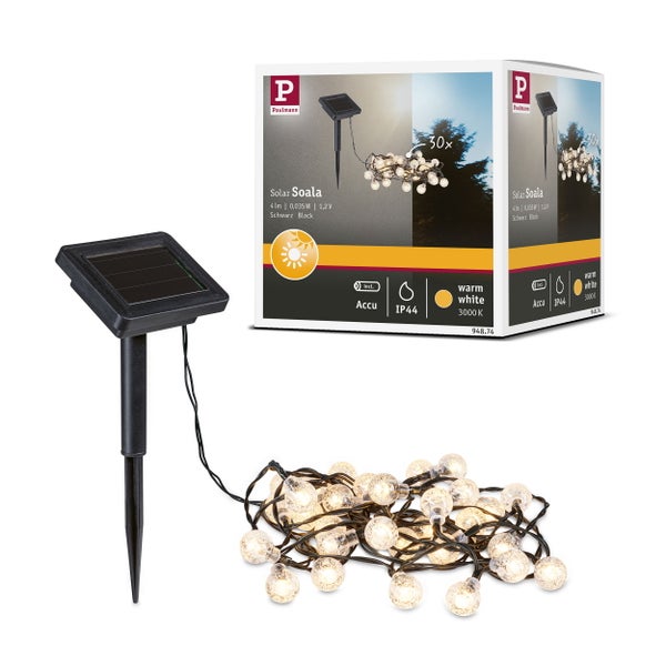 Solar LED Lichterkette Soala IP44 3000K 30x3lm Schwarz