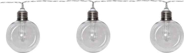 - Die Lichterkette besteht aus acht transparenten Kugeln mit verbauter Kunststoffscheibe, welche das Licht verbreitet