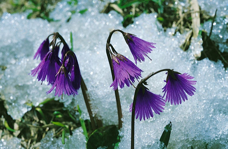 Bevorzugt wird ein halbschattiger bis schattiger Standort mit kühler Wurzelzone. Der Boden sollte humos, gleichmäßig frisch bis feucht, locker und gut drainiert sein, gerne mit Laubhumus und eher schwach sauer bis neutral; Kalk verträgt die Staude nur bedingt. Staunässe und sommerliche Trockenheit vermeiden, denn konstante Feuchte fördert die reiche Blüte und gesundes Laub. Eine dünne Mulchschicht aus Laub hält den Boden kühl und stabilisiert die Feuchte, während kalkarmes Gießwasser die Kultur erleichtert. Rückschnitt ist nicht notwendig; verblühte Stiele können nach Bedarf entfernt werden. Als langlebiger Blütenstauden-Klassiker für Steingarten, Schattenbeet, Waldgarten und Pflanzgefäße bringt Soldanella montana pünktlich nach der Schneeschmelze poetische Frühlingsmomente in jeden Ziergarten und macht als zierlicher Gartenstrauch-Ersatz im Beetvordergrund eine besonders feine Figur.