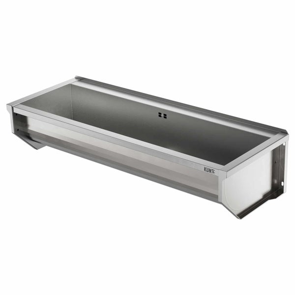 KUNe SOLIDUM 120 bietet den nötigen Platz für Ihre Anforderungen. Groß, praktisch und mit noch mehr Volumen so präsentiert sich unser Edelstahl Ausgussbecken mit einer Innenbreite von 120 cm. Wenn Sie mit großen Gerätschaften oder Gegenständen hantieren, dann ist unser 120er-Becken genau das Richtige für Sie. Dieses Ausgussbecken ist ideal, wenn Platz und Volumen benötigt werden. Dieses Edelstahl Waschbecken ist perfekt für den Waschraum in der Industrie, zum Kartoffelwaschen, zum Einweichen von Textilien oder zum Reinigen von langen Gegenständen.