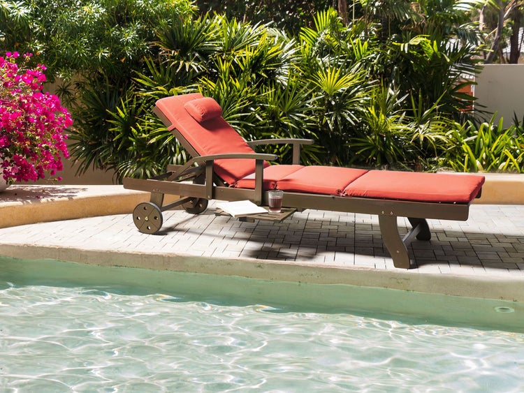 Sonnenliege mit Kissen AMANTEA PREMIUM II Akazienholz Rot