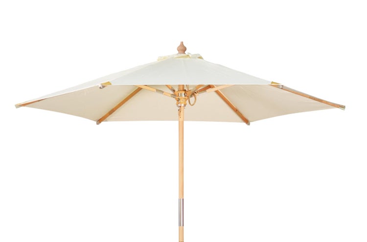 - ArtikelvorteilMast und Streben aus Holz (FSC®), Windauslass, teilbarer Mast, lederverstärkte Tuchenden, einzeln verschraubte Streben