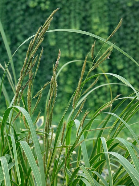 Spartina pectinata ‘Aureomarginata’, im Deutschen oft als Prärie-Schlickgras bezeichnet, ist ein charakterstarkes Ziergras und langlebige Staude mit eindrucksvoller Blattzeichnung. Die elegant überhängenden Blätter sind frischgrün mit leuchtend goldgelben Rändern, was dem Horst eine dynamische, zweifarbige Optik verleiht. Im Spätsommer erscheinen lockere, rispige Blütenstände, die sich beige bis strohfarben färben und dem Präriegras eine filigrane, natürliche Note geben. Der Wuchs ist kraftvoll und aufrecht, mit breitem, standfestem Habitus, der im Jahresverlauf an Höhe und Volumen gewinnt und bis in den Winter hinein attraktive Struktur liefert. Als Solitär setzt ‘Aureomarginata’ starke Akzente im Staudenbeet und Präriebeet, lässt sich aber ebenso wirkungsvoll in Gruppenpflanzungen kombinieren, wo es als Strukturpflanze Kontraste zu Blütenstauden, Halbsträuchern und filigranen Gräsern schafft. An Teichrändern, in Feuchtbereichen des Gartens und im großzügigen Vorgarten punktet dieses Ziergras mit natürlicher Eleganz; in ausreichend großen Gefäßen eignet es sich auch als Kübelpflanze für Terrasse und Dachgarten. Ein sonniger bis halbschattiger Standort auf frischem bis feuchtem, humosem und nährstoffreichem Boden fördert den gleichmäßigen Wuchs und die intensive Panaschierung; auch schwere, lehmige Substrate werden gut toleriert. Pflegeleicht und schnittverträglich, wird der horstige Bestand idealerweise erst im späten Winter bodennah zurückgeschnitten, damit die Halme ihren Zierwert bis zur kalten Jahreszeit behalten und der Neuaustrieb im Frühjahr kraftvoll startet.