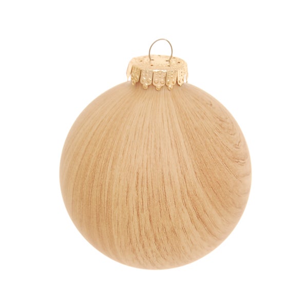 Spezial-Glaskugel in Holzoptik, Hellbraun Satin, 8cm, 1 Stck., Weihnachtsbaumkugeln, Christbaumschmuck, Weihnachtsbaumanhänger