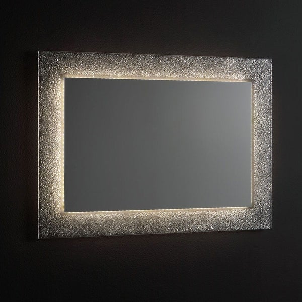 Verleihen Sie Ihrem Zuhause mit diesem Spiegel mit einer Eiskristallglasgranulat-Rahmen einen Hauch von Eleganz und Licht. Die integrierte LED-Hintergrundbeleuchtung schafft raffinierte Lichteffekte, ideal für jeden Raum, einschließlich Badezimmer dank des IP44-Schutzgrades. Der Spiegel, mit einem PVC-Rahmen ausgestattet, ist reversibel und kann sowohl horizontal als auch vertikal installiert werden.tdecken Sie die verschiedenen verfügbaren Oberflächen, um Ihr Zuhause mit unverwechselbarem Stil und Qualität einzurichten.
