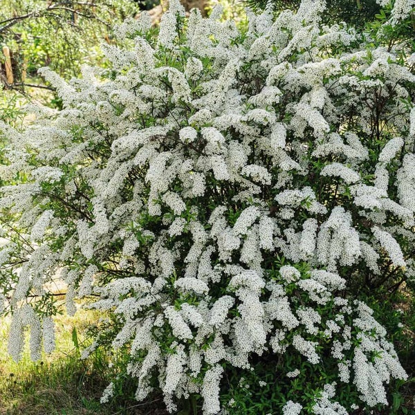 Spiraea cinerea 'Grefsheim', Weiße Rispenspiere: Diese Spiraea ist ein echter Blickfang mit ihren üppigen, weißen Blüten im Frühling. Ein dichtbuschiger Strauch mit zierlichen Trieben, die elegant überhängen. Diese Triebe sind in der Blütezeit mit schneeweißen Blütendolden übersät. Ein großartiger Blickfang! Sie ist pflegeleicht und ideal für Hecken oder als Einzelpflanzung.