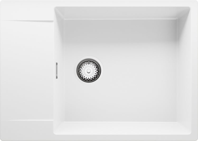 Spülbecken Weiß 70x50cm, Granitspüle 1 Becken + Ablauf-Set, Küchenspüle ab 60er Unterschrank - San Francisco von Primagran