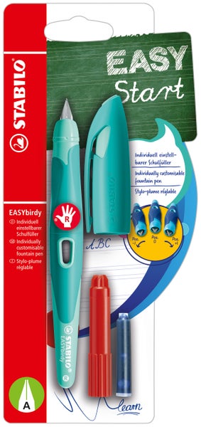 HerstellerStabiloSerieSTABILO EASYbirdyTitelSTABILO Füller EASYbirdy pastel Feder A aqua grün/mint für RechtshänderErscheinungsdatum01.04.2021Laenge195 mmHoehe20 mmBreite95 mmEAN4006381572699