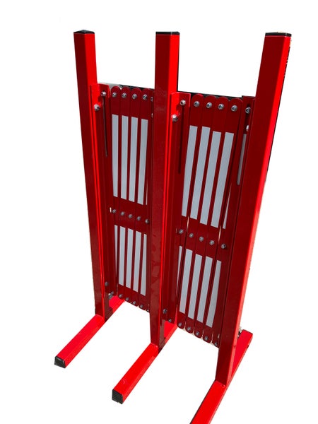 Scherengitter rot/weiss oder gelb/schwarz aus Metall ausziehbar