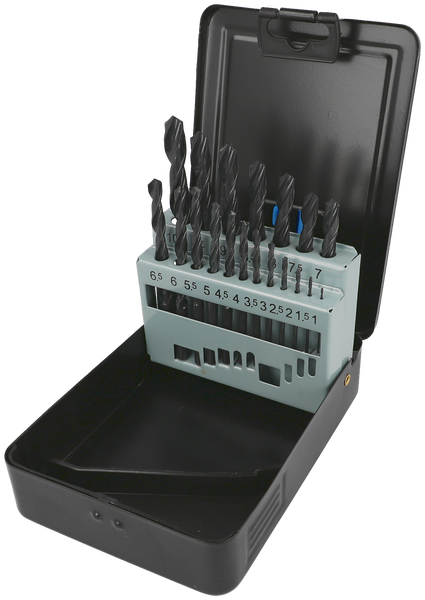 Stahlbohrer HSS-R 19 tlg. Set in Metallkassette Ø 1 / 1,5 / 2 / 2,5 / 3 / 3,5 / 4 / 4,5 / 5 / 5,5 / 6 / 6,5 / 7 / 7,5 / 8 / 8,5 / 9 / 9,5 / 10 mm - 1 Set