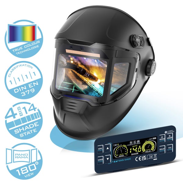 - Ausgestattet mit einer True-Colour-Filterkassette der neuesten Generation gewährleistet die Schweißermaske optimale Sichtverhältnisse und eine ausgezeichnete Echtfarbwiedergabe.
