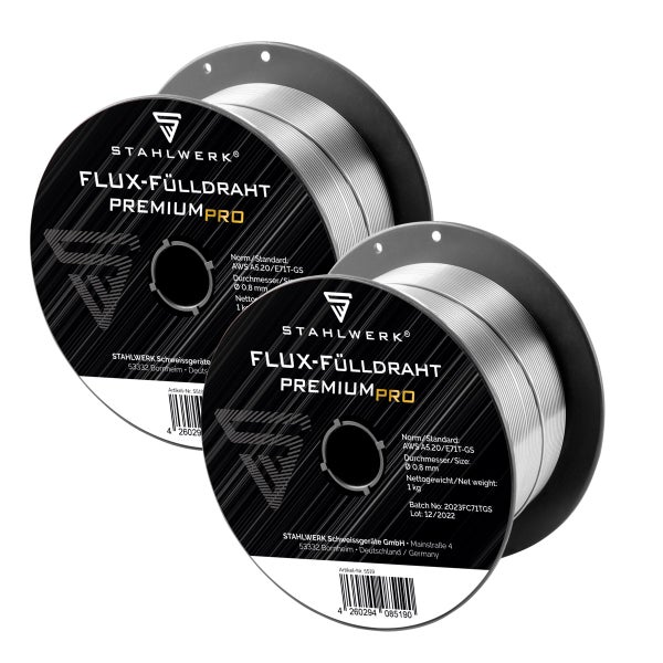 - 2 x STAHLWERK Premium Flux-Fülldraht ø 0,8 mm / 1 kg S100/D100 Drahtrolle