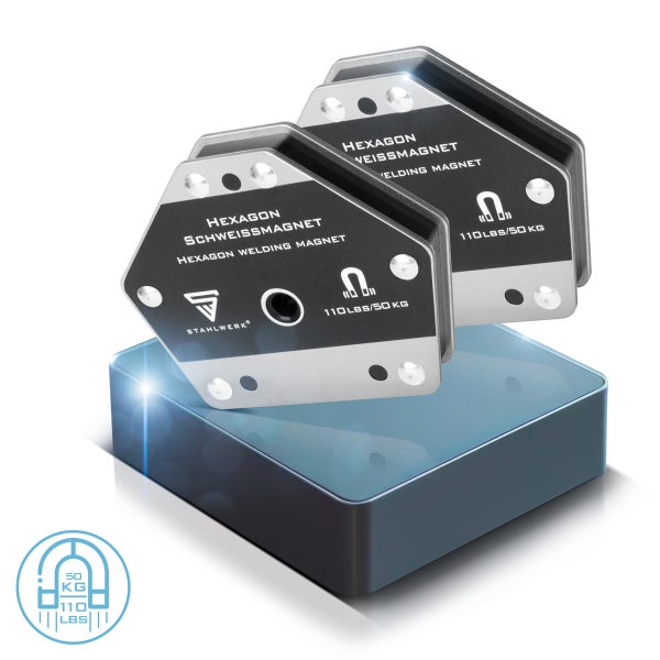 - Der STAHLWERK Hexagon Schweißmagnet kombiniert eine starke Haftkraft von bis zu 50 kg mit einer durchdachten, sechseckigen Form, die flexible Anlegemöglichkeiten und präzises Arbeiten ermöglicht.