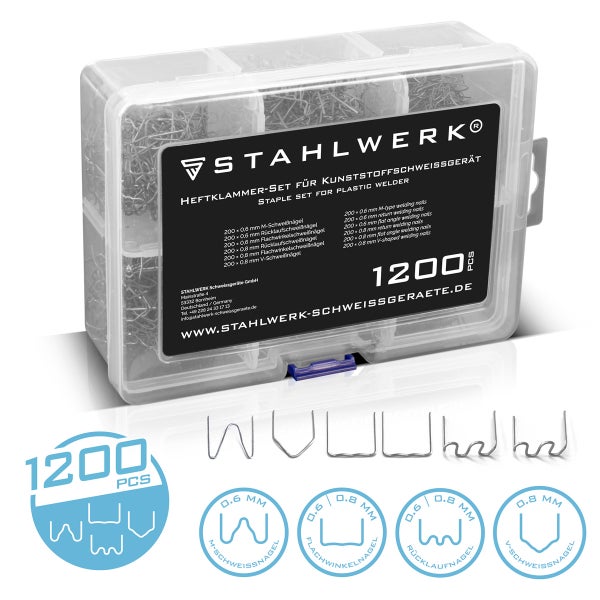 STAHLWERK Klammer Set Kunststoff-Schweißgeräte 1.200 Heftklammern Schweißnägel