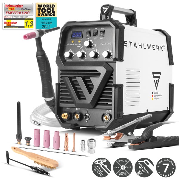 - 1 x Das Schweißgerät STAHLWERK AC/DC WIG 200 ST IGBT