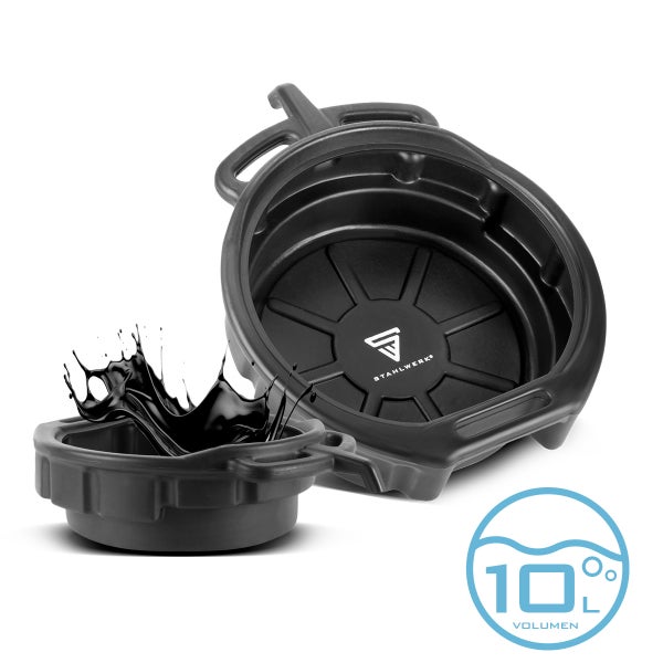 - Die runde Ölauffangwanne eignet sich mit einem Fassungsvermögen von 10 Litern ideal für Ölwechsel-Arbeiten am Kfz.